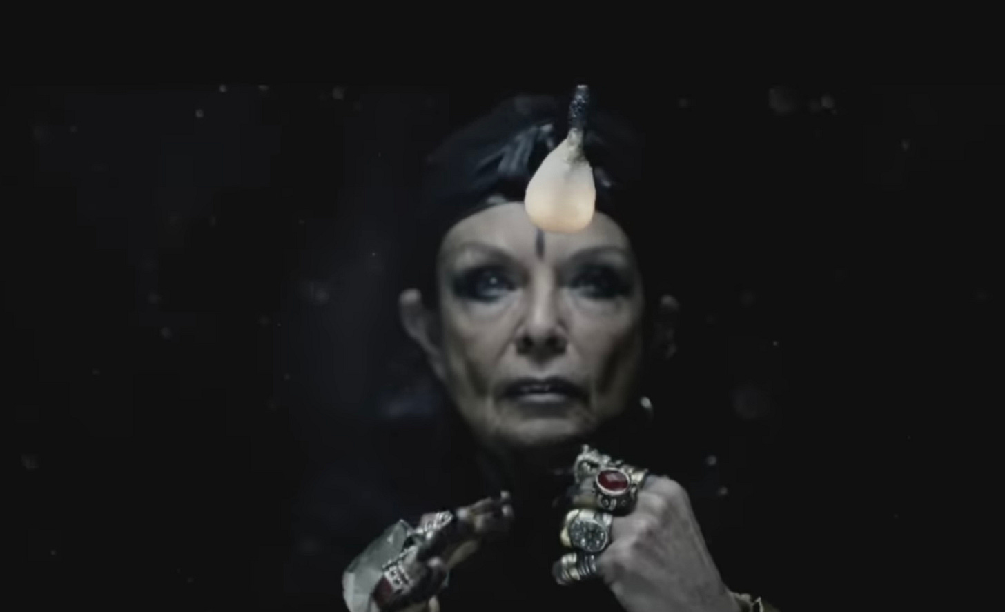 FKA Twigs’s experimental short film, M3LI55X, opens with her ominous, yet enchanting track Figure 8. Michèle Lamy is the star of this act, and is costumed as an angler fish adorned in gold. The duration of this act features Michèle leering into the camera, laughing, or staring pensively off camera into a dimly lit landscape. “I’ve a baby inside / But I won’t give birth / ‘Til you insert yourself inside me”, Twigs sings. There is something borderline indescribable about the belief of the possibility of creation that she sings of.