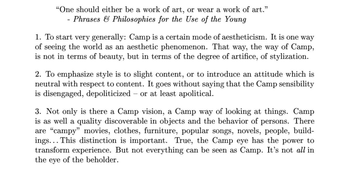 Ugly Betty is a masterclass in camp. Betty Suarez’s characterization aside, the show features an array of characters that subscribe to camp in various forms— from Wilhelmina (often characterized as a Cruella-esque figure), the outwardly cold yet lonely fashionista, to Mark, her snarky gay sidekick and his cohort. In Susan Sontag’s Notes on Camp, it is described as so: